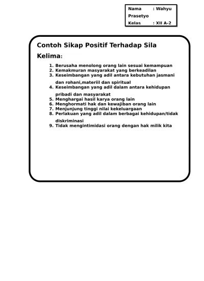 Dalam sila ke 5 juga diingatkan untuk saling menghargai hak milik orang lain, sehingga tidak baik merampas benda atau barang yang bukan menjadi milik kita. Sila kelima keadilan sosial bagi seluruh rakyat indonesia. Download as docx pdf txt or read online from scribd. Tidak memaksakan kehendak pada orang lain. Selalu mengedepankan musyawarah untuk mencapai mufakat dalam menyelesaikan masalah. Berikut contoh sikap yang mencerminkan di sila kedua : Melakukan tugas dengan dan benar serta siap menerima risiko atau tindakan tanpa menyalahkan orang lain. Sesuai konsep bhineka tunggal ika dimana keberagaman suku, agama, serta budaya tidak menjadi penghalang bagi semua orang untuk bersikap saling menghormati seta menghargai. menghargai hasil karya teman bermain. Mata pencaharian masyarakat di indonesia sangat beragam, mulai dari pedagang asongan, pengamen, pegawai, karyawan swasta. Menerima pendapat orang lain merupakan salah satu bentuk penghormatan yang perlu dilakukan oleh setiap orang, karena berpendapat tentang sesuatu termasuk hak asasi manusia yang perlu kita hormati dan junjung tinggi. Menjunjung tinggi setiap jenis pekerjaan yang dilakukan orang lain. Tidak menghargai karya orang lain dapat membawa pada sikap iri hati, dengki, hingga suuzan pada orang lain.