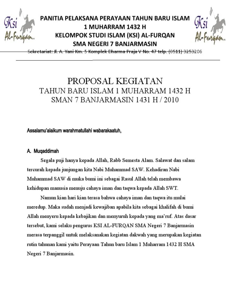 Pengajuan pengadaan alat dan seragam hadroh. Contoh surat permintaan permohonan bantuan dana proposal untuk haflah dan lomba. Proposal permohonan bantuan dana pengajian akbar dalam rangka muhasabah tahun baru 1434 . Sebagai organisasi sosial kepemudaan karang taruna merupakan wadah pembinaan dan pengembangan serta pemberdayaan dalam upaya mengembangkan kegiatan ekonomis . Contoh proposal kegiatan isra' mi'raj adalah proposal yang diajukan untuk kegiatan memperingati kelahiran nabi muhammad saw.
