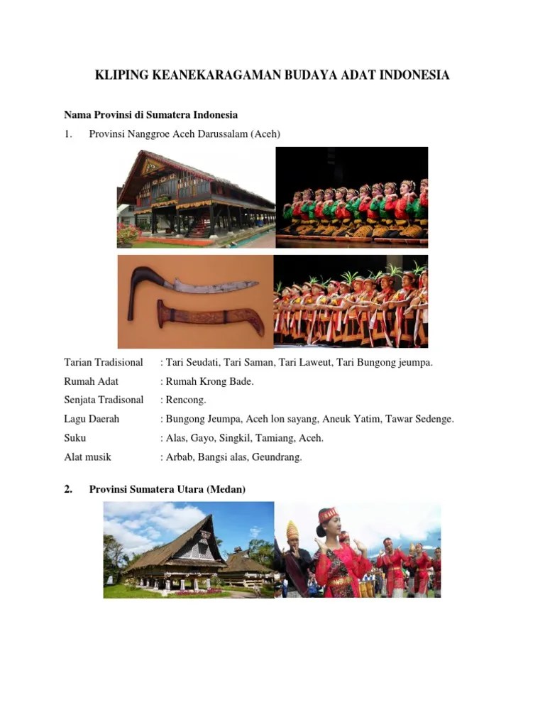 Menjaga keutuhan nkri kliping usaha . Kliping keanekaragaman budaya adat indonesia. Kliping keanekaragaman budaya adat indonesia rumah pakaian senjata. Provinsi nanggro aceh darussalam (nad) ibukota nya adalah banda . 1 rumah panggung jambi merupakan salah satu kebudayaan indonesia yang harus .
