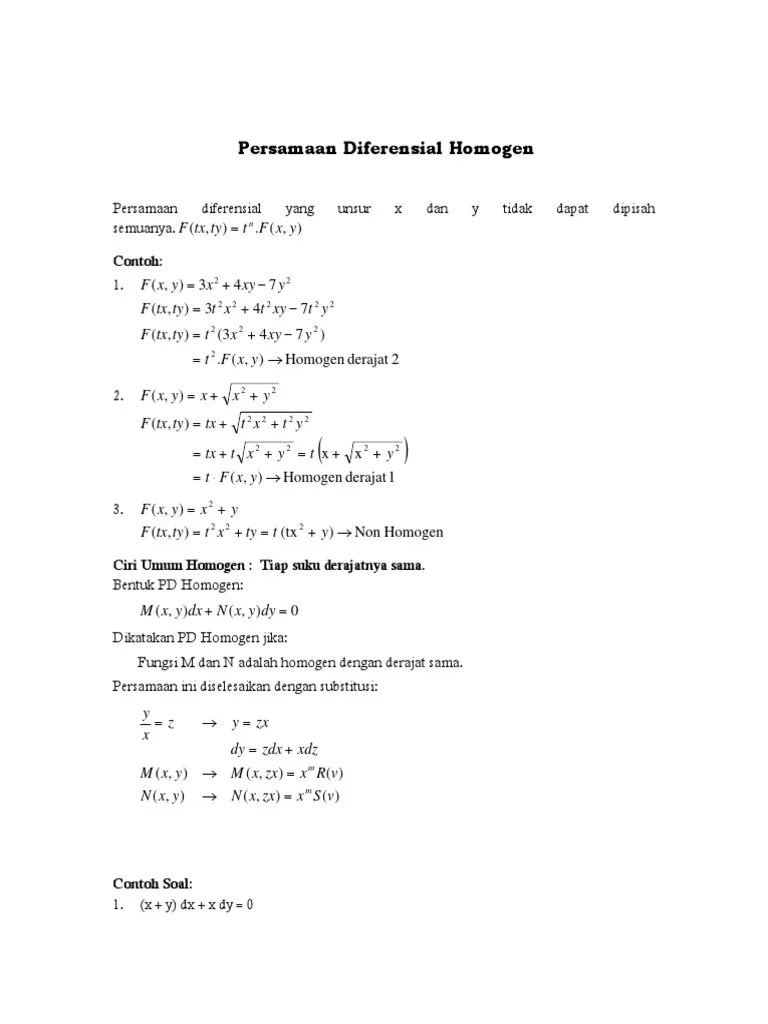 Pdf Persamaan Diferensial Eksak Rahmat Budiarjo Academia Edu from 0.academia-photos.com = 6x + 2a , turunan terhadap x 𝑑𝑥 2 𝑑3 𝑦 persamaan 4 : = 3x2 + 2ax + b , turunan terhadap x 𝑑𝑥 𝑑2 𝑦 persamaan 3 : Y = x3 +a x2 + b x + c , turunan terhadap x 𝑑𝑦 persamaan 2 :
